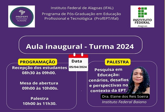 ProfEPT/Ifal realiza nesta sexta-feira (5) aula inaugural da turma 2024